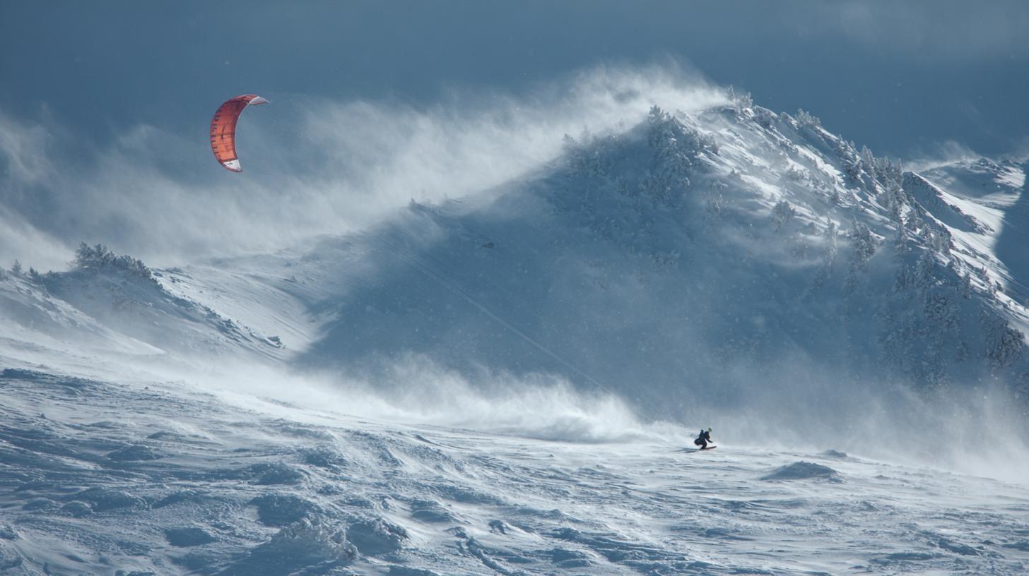 - Оптика: муть в воздухе от переносимого снега, снежный «факел» с гребня.