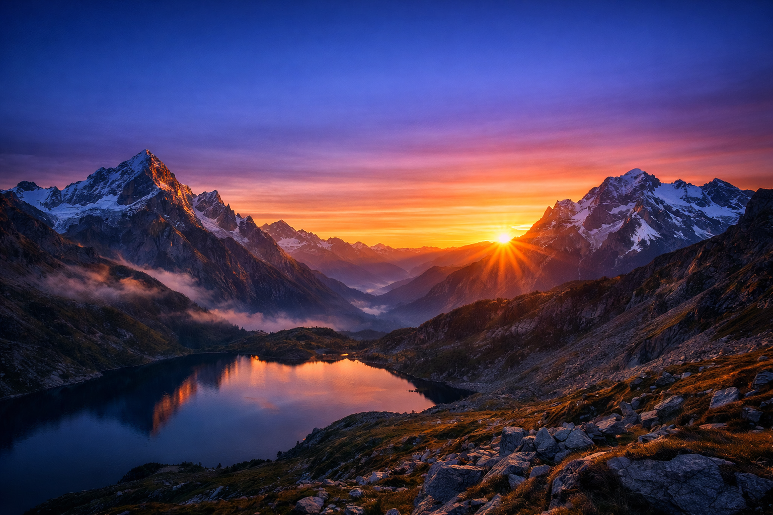 | Горы | Чистый, сухой воздух, мало пыли, низкая влажность | Яркая, контрастная, с чёткими розовыми и красными оттенками |