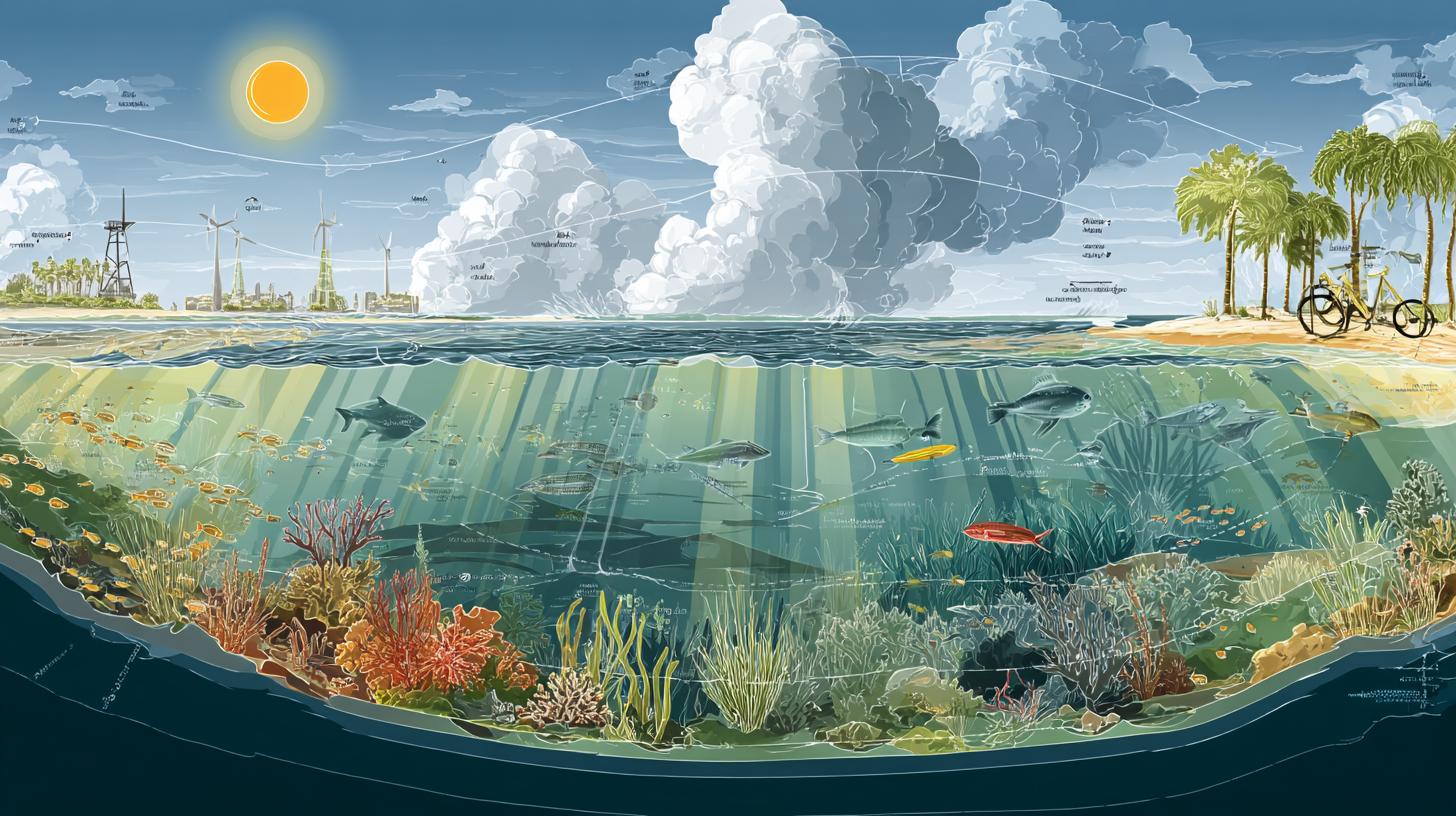 Расслаивание под солнцем и преснение в устьях рек уменьшают вертикальный обмен. Биологический насос теряет эффективность, а пополнение питательных веществ из глубины сокращается. Региональные выбросы из тропиков усиливаются во время тёплых фаз климата, что добавляет колебаний глобальному тренду.